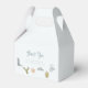 Cute and rustic cowboy theme baby shower favor box featuring illustration of cowboy boot, sheriff's badge, hat, snake and cacti.