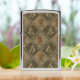The seamless pattern is a done in diamond layout with wooden grain. One diamond has a bull rider and bull in gray scale. The the squire has a cowboy hat sitting on top of cowboy boots with spurs, and done in shades of brown.