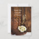 Write a message of thankfulness and appreciation after an engagement party, bridal shower or wedding with the charming Cowboy Boots, Daisies and Horse Bit Western Wedding Flat Thank You Note. These casual yet classy custom equine theme thank you notes feature a quaint floral photograph of a pair of leather cowboy boots, yellow and white daisy flower blossoms, pearl necklace, horse bit and leather reins with a rustic brown weathered barn wood background.