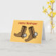 This whimsical custom design for dance lovers has a pair of brown cowboy boots with spurs.