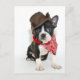 Boston Terrier puppy dressed up in a cowboy outfit on a white background. © and ® Bigstock® - All Rights Reserved.
