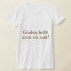 My overall review is that the T-shirt is nice, it fits true to size however the font is significantly smaller than advertised and you can't read it. The printing is unreadable and there is a strain to read it. It does not look like the advertised product. Maybe the shirt color is darker or a larger more visible font should have been used. Photos with and without flash and font is barely legible.