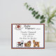 This is our second baby shower invitation in this design with a postcard. The design has stuffed animals to look western with cow, horse, wheel,cowboy hat, cowboy boots and plaid star in deep red.