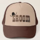 Cowboy groom has a black hat and a rustic wood grain, for when a cowpoke and cowgirl get hitched. A cool gift cap is great for the bridegroom!