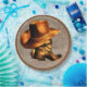 COWBOY HAT AND BOOTS---ON BURLAP LOOK BACKGROUND.---USE ANY COLOR FOR BACKGROUND.----ADD SOME TEXT.---USE ANY FONT AND FONT COLOR.