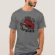 My 11 yo wore adult XL (5’7” 165#). The 8yo is small framed. She wore adult small and tied it in the back. Grandma wore adult large with long sleeve shirt underneath. Tall girl adult medium. Dark haired male adult large. Good quality dark Heather gray, Gildan brand shirt. -it was next up from basic choice and cost about $20 per shirt. Not too thick or thin. Washed and dried well, no major shrinkage. Not see-through. Can wear a bra under it fine. Screen print is just as shown and well done, front and back.