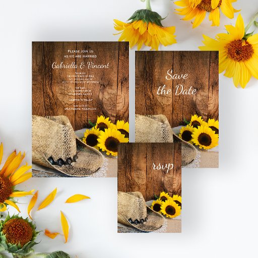 Cowboy Hat Sunflowers Barn Wood Wedding Program