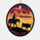 Personalize this "One Of A Kind" Western Christmas Ornament! Featuring a Silhouette of a Cowboy Riding a Horse Herding a Longhorn Steer During a Beautiful Orange Moonlit Night!