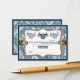 Blue bandanna print with jeans and chaps diapers on clothesline and a 3D-look twine bow diaper raffle ticket design for a baby shower.