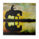 Silhouette of cowboy on horesback at sunset on a decorative tile