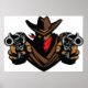 A cowboy outlaw with his guns out. This design looks really effective on these Poster