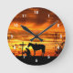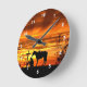 Cowboy prayer silhouette with a stunning sunset wall clock