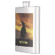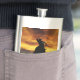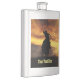 A flask to be customized with your text! A super cool country western rodeo image of a cowboy roping a steer in a very cool sunset.