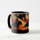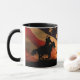 Cowboys roping with an american flag coffee mug. This is a great country western coffee mug and pretty patriotic too! A pair of team ropers, any rodeo goer would know, and a steer with a giant flag backdrop.