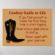 Cowboy Guide to Life -- If you find yourself in a hole. The first thing to do is start digging. --Never miss a good chance to shut up. -- Never squat with your boots on. -- poster art