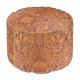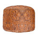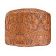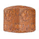 Rustic western country pattern tooled leather print round pouf . Cowboy fashion decor accessories.