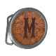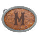 Rustic western country pattern tooled leather print monogrammed belt buckle. Cowboy fashion accessories.