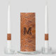 Rustic western country pattern tooled leather print monogrammed unity candle set. Cowboy wedding favors.