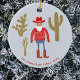 Cowboy Santa Claus Christmas Custom Text Ceramic Ornament