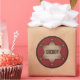 Cowboy sheriff badge in reds and browns western baby shower gift label.