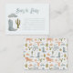 Cute cowboy theme baby shower book request card featuring illustration of cowboy boot, hat, and a cacti. The card asks guests to bring in a new or used children's book instead of a card.