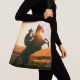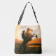 Crossbody Tote Bag with image of a cowboy on a horse with the setting sun in the background.