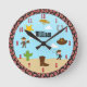 Cowboy Western wall clock features cowboy hat, boots, cactus and horseshoe. Some elements JDDigiDesign.
