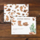 Saddle up! This watercolor cowboy design. This design features modern neutral colors in a watercolor application. Design in cow print, cowboy hat, desert cactus, cowboy boots. "A little cowboy is on the way"