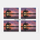 This beautiful design features a cowboy riding his horse along a lake in front of a beautiful pink sunset.