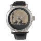 A very cool country western ranch watch of roping cowboys, their horse a steer and a windmill all silhouetted by an autumn full moon.