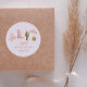 Rustic cowgirl theme wild west birthday party favor sticker featuring illustration of cowboy boot, hat, snake, and cacti.