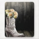 Cowgirl Lace & Pearls Boots White Flowers Rustic Mouse Pad