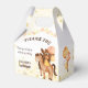 Cute little brown skin cowgirl saddle up birthday thank you favor box template. Cowgirl riding cute baby horse with balloons and bunting flags at the background. Brown yellow farm colors. Please note, that box is not big, you can put in there some sweets, treats - small things.
