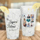 Add 8 photos and create a funny custom collage grid beer glass tumbler with a trendy heart and a chic, thoughtful quote, "the legend has retired" script for your coworker on retirement.