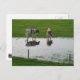 Cow Reflections in Water Postcard. Two Frisian Holstein cows standing in a green grassy meadow with reflections in the water postcard. This great cows postcard is fully customizable, add your texts and images. A beautiful cow animal gift for the big cow fans!