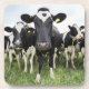 Cows standing in a row looking at camera beverage coaster