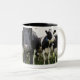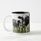 Cows standing in a row looking at camera Two-Tone coffee mug