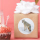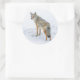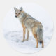 Coyote on alert in snow classic round sticker