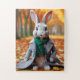 This charming puzzle features an adorable white bunny in a stylish gray coat and green scarf, sitting against a picturesque autumn backdrop. Bright autumn leaves and warm colors create a cozy and inviting scene, making this puzzle the perfect activity for a relaxing day. The puzzle pieces are well-crafted, ensuring a satisfying and enjoyable assembly experience. Ideal for both children and adults, this puzzle not only entertains but also serves as a wonderful seasonal decoration once completed