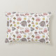 Festive Autumn throw pillow features cozy items for Fall including sweater, hat, scarf and tea elements on white background