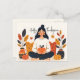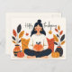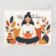 Cozy Autumn Meditation Woman Pumpkin Thanksgiving Holiday Postcard