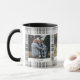 Black & white plaid fabric 3 photo family mug. The design features a faux black and white plaid flannel fabric texture design with hints of light grey. Personalize with three special photos, and customize with your name(s). Designed by Moodthology Papery