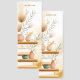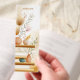 Create a tranquil reading nook with this cozy boho personalized bookmark, showcasing a charming bookshelf scene. Tiered wooden shelves in warm natural hues are adorned with stacked books, rustic ceramic vases in muted coral, and a speckled teal cup, all rendered with soft watercolor textures. Vases are filled with hand-drawn dried florals and grasses, while a creamy beige background with textured speckling enhances the rustic tranquility. The warm earth tones, including sandy beige and terracotta, blend seamlessly, with brushstrokes and stippled detailing lending a handcrafted, artisan feel. Balancing natural elegance and curated styling, this inviting design evokes a sophisticated, homey vibe, perfect for your book collection.