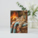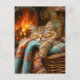 Cozy Cat Sleeping in Basket by Warm Fireplace Postcard