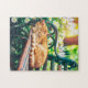 Cozy Cat Sleeping in Garden on Bench Jigsaw Puzzle