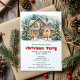 Invite your loved ones to a warm and joyful celebration with this watercolor Christmas invitation featuring a cozy Christmas house and festive winter scene. Designed in a classic red and green color palette, this card captures the timeless beauty of the season with its hand-drawn details and playful lettering.