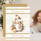 Cozy Christmas Snowman Blanket With Name decorated with a gold colored snowman with soft gold colored hearts and trim on a white background. The front text includes: Christmas Time and the Child's First and Middle Names. The reverse side is a matching gold background. To personalize, simply insert the child's name(s) into our easy template. Make a great Christmas gift.