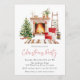 Invite guests to a warm, festive gathering with this cozy watercolor Christmas party invitation, featuring a charming holiday interior scene. A beautifully decorated Christmas tree with presents rests beside a glowing fireplace adorned with stockings, while a wooden ladder with a blanket, stacked books, and a red accent chair add a touch of boho charm. “Christmas Party” appears below in a modern handwritten script, with customizable space for your event details. Perfect for hosting a holiday party, a casual Christmas celebration, or a cozy winter get-together, this inviting design brings all the warmth and magic of Christmas to your celebration.