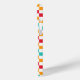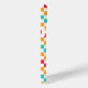Alternating red, orange, teal, and white squares create a colorful, vibrant checkerboard pattern, conveying an energetic and playful tone.