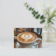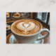 A steaming latte sits on a wooden table inside a cozy coffee shop. The frothy milk is expertly swirled into a delicate heart shape, a testament to the barista's skill and care. Warm, natural light streams in, highlighting the rich golden tones of the coffee and the pristine white of the foam. The inviting atmosphere is enhanced by subtle background details of the cafe.